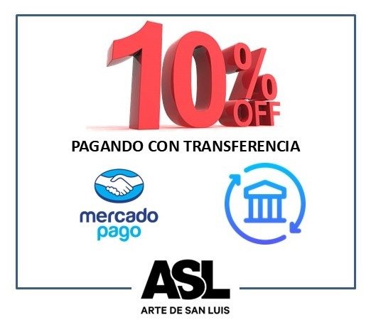 10% DESCUENTO sobre precio publicado, pagando a través de TRANSFERENCIA BANCARIA o de MERCADO PAGO.